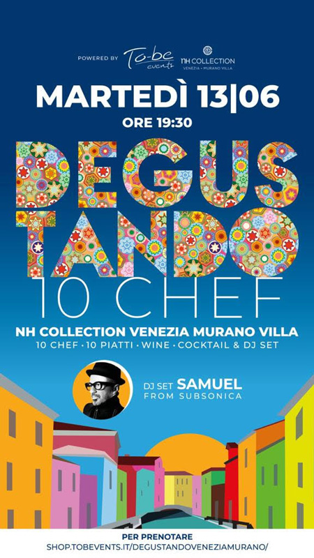 L’evento gastronomico si terrà all’NH Collection Venezia Murano Villa (Fondamenta Andrea Navagero, 29, 30141 Venezia) alle ore 19:30, situato nell’ex fabbrica del vetro De Majo con vista panoramica sulla Laguna. Nell’elegante atmosfera di questo edificio storico, 10 Chef prepareranno in Show Cooking 10 piatti di alta gastronomia declinandoli in chiave street food, che verranno quindi degustati dagli ospiti, insieme a grandi vini, eccellenze gastronomiche del territorio e cocktail.