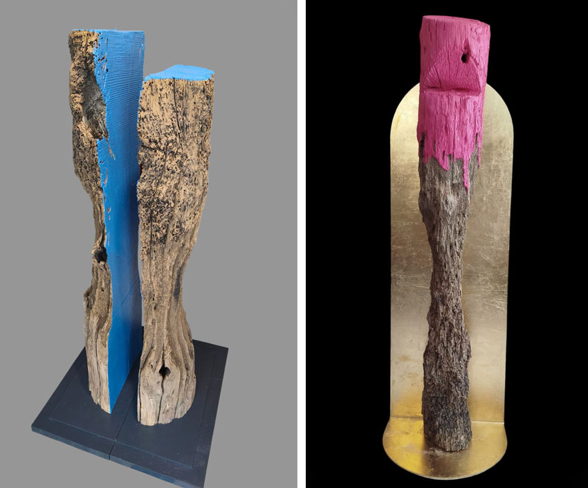 Così come il vetro è il simbolo di Murano, il legno è un elemento fondamentale per Venezia e la sua laguna. Partendo da questo materiale, Marcato ha creato il suo mondo di simboli e colori. Oggi, il prelievo di diverse entità materiali dalle realtà urbane e la loro rielaborazione attraverso la pittura è la caratteristica distintiva dell’artista veneziano, come le briccole (i lunghi pali di legno che segnalano i canali percorribili in laguna) spezzate recuperate nella laguna, o come i sampietrini recuperati dai lavori di ripavimentazione di Piazza San Pietro a Roma, che nell’arte di Marcato diventano vere e proprie installazioni.